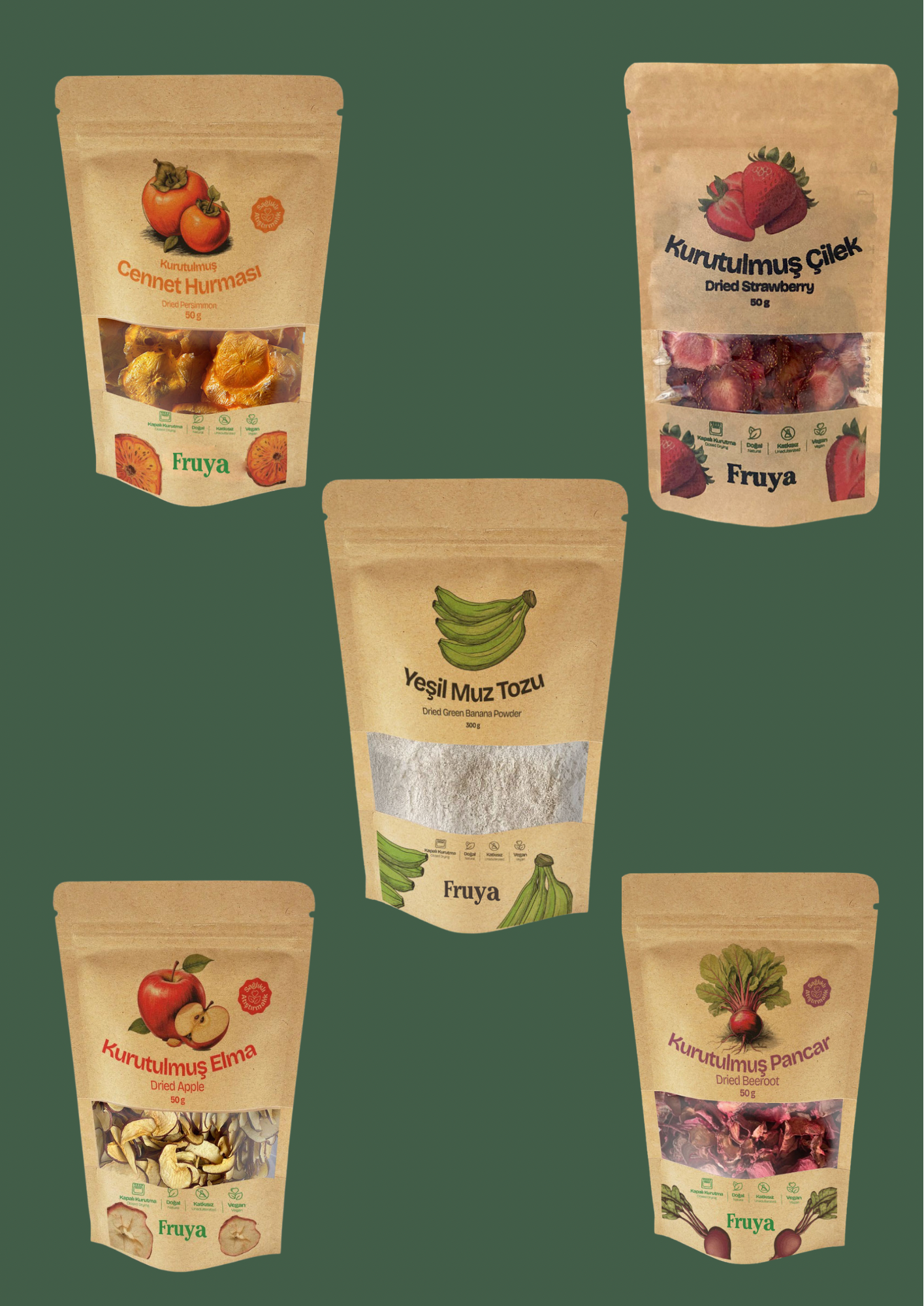 Fruya olarak, doğadan gelen en taze ve sağlıklı meyveleri özenle seçiyor, hiçbir katkı maddesi kullanmadan kapalı kurutma yöntemiyle kurutuyoruz. Ürünlerimizin kalitesi, tarladan sofranıza ulaşana kadar sıkı kontrol süreçlerinden geçer.